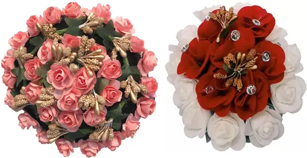 Full Juda Bun Hair Flower Artificial flower gajra Combo for Wedding and Par..More