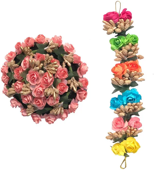 GadinFashion ™ Full Juda Bun Hair Flower Artificial flower gajra and Multi ..More