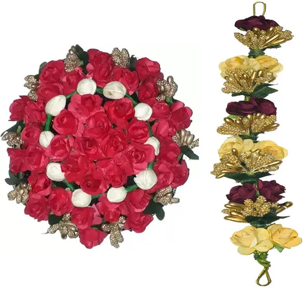 GadinFashion ™ Full Juda Bun Hair Flower Artificial flower gajra and Multi ..More