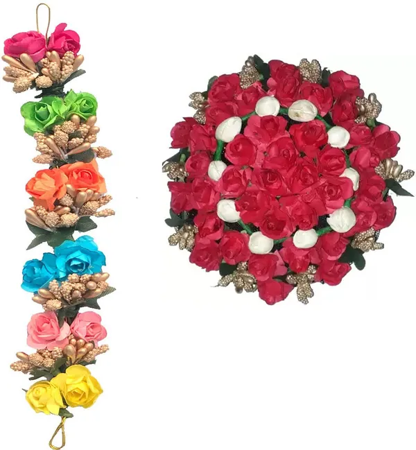 GadinFashion ™ Full Juda Bun Hair Flower Artificial flower gajra and Multi ..More