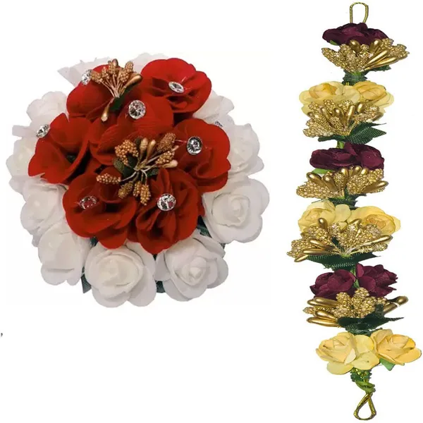 GadinFashion ™ Full Juda Bun Hair Flower Artificial flower gajra and Multi ..More