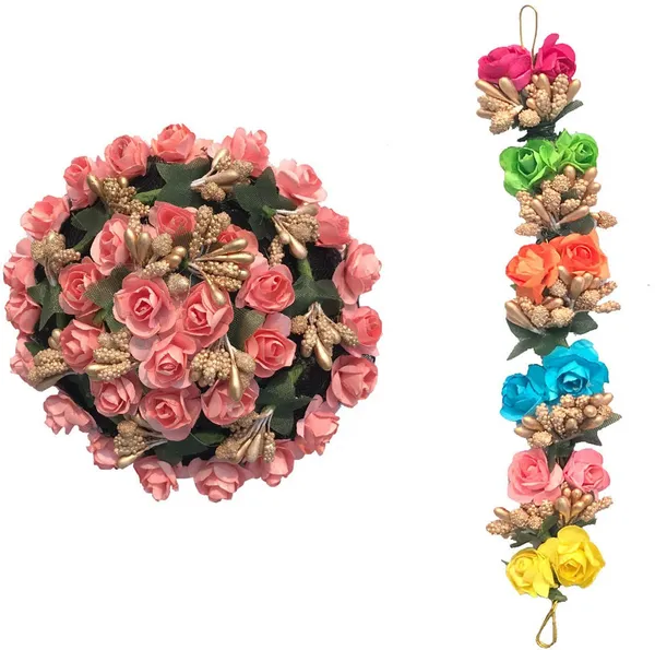 GadinFashion ™ Full Pink Juda Bun Hair Flower Artificial flower gajra
