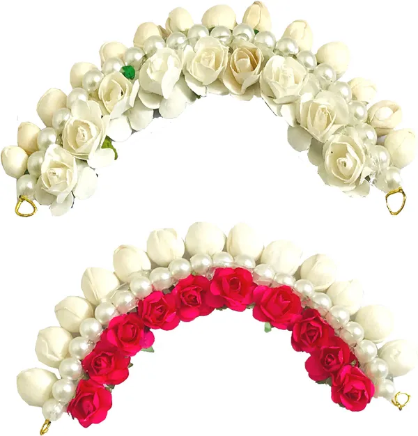 GadinFashion ™ Stylish Wedding Hair Bun Gajra Hair for Women in Pink & Whit..More