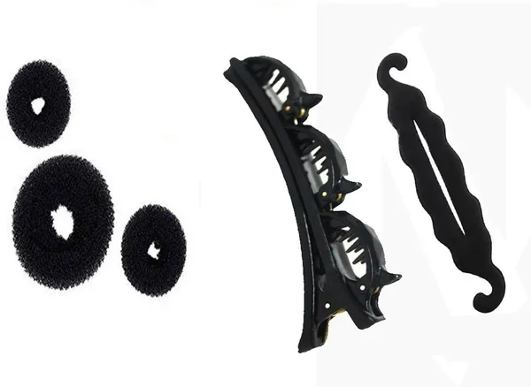 1 HAIR CLIP AND 3 DONUTS WITH 1 BUN MAKER