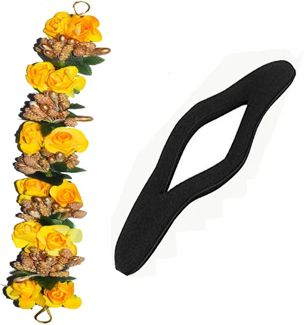 GadinFashion Fancy Yellow fabric Gajra and Bun Hair Accessory Set (Multicol..More