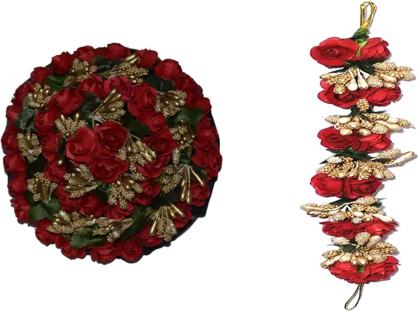 GadinFashion Full Red Juda Bun Hair Flower Gajra and Red gajra Combo Hair A..More