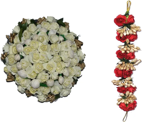 GadinFashion Full White Juda Bun Hair Flower Gajra and Red gajra Combo Hair..More