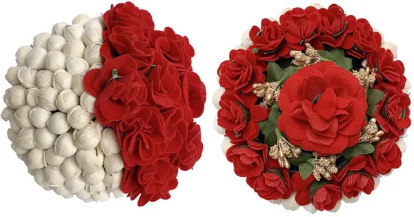 GadinFashion Hair Bun Artificial Gajra Full Bun in White and Red Pack-02 Bu..More