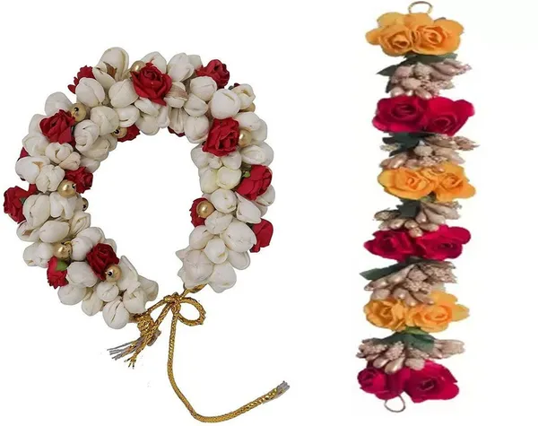 GadinFashion Hair Bun Mogra & Red Yellow Flower Gajra for Women in Pack of-..More