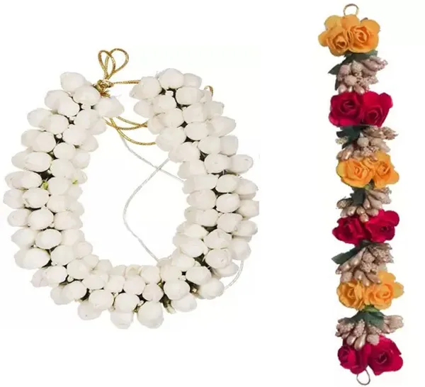 GadinFashion Hair Bun Mogra & Red Yellow Flower Gajra for Women in Pack of-..More