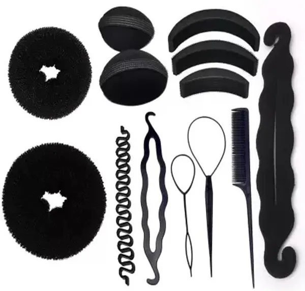 GadinFashion Hair Styling Tool Combo Pack of 13 Hair Accessory Set (Black)
