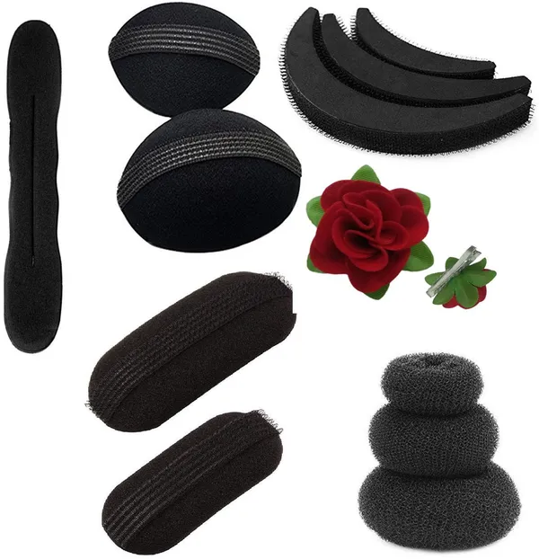 3 DOUNT, 2 TIC TAC PUFF MAKER, 2 VOLUME,3 BNANA PUFF MAKER,1 MAGIC BUN MAKER, 1 RED ROSE