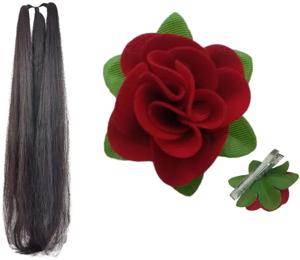 GadinFashion Pack of 24Inchs Black Hair Parandi with Fabric Red Rose Flower..More