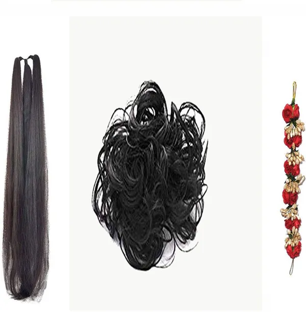 1 Black Prandi 24Inches::1 Red Gajra::01 Black Rubber Juda.
