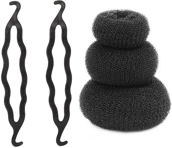 GadinFashion Pack of 3 Size Donut and 2 Styling Clip Bun Maker Hair Accesso..More