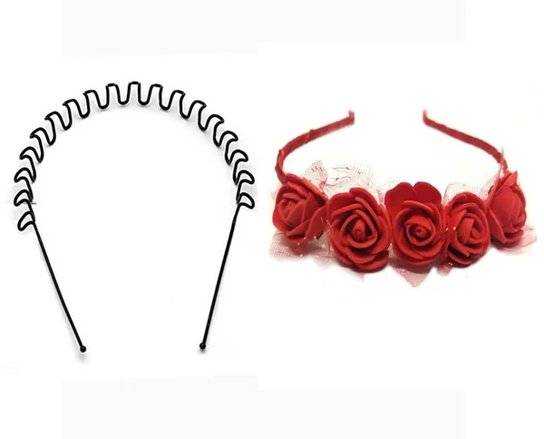 1 ZIG ZIG METAL HAIR BAND AND 1 RED ROSE HAIR BAND