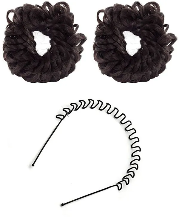 GadinFashion Set of 02 Fancy Rubber Juda (Brown) and 1 Zigzag Hair Band Hai..More