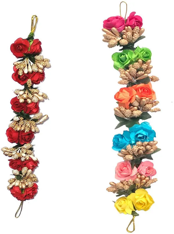 GadinFashion Set of 2 Fancy Fabric Hair Artificial flower gajra, Flower Jud..More