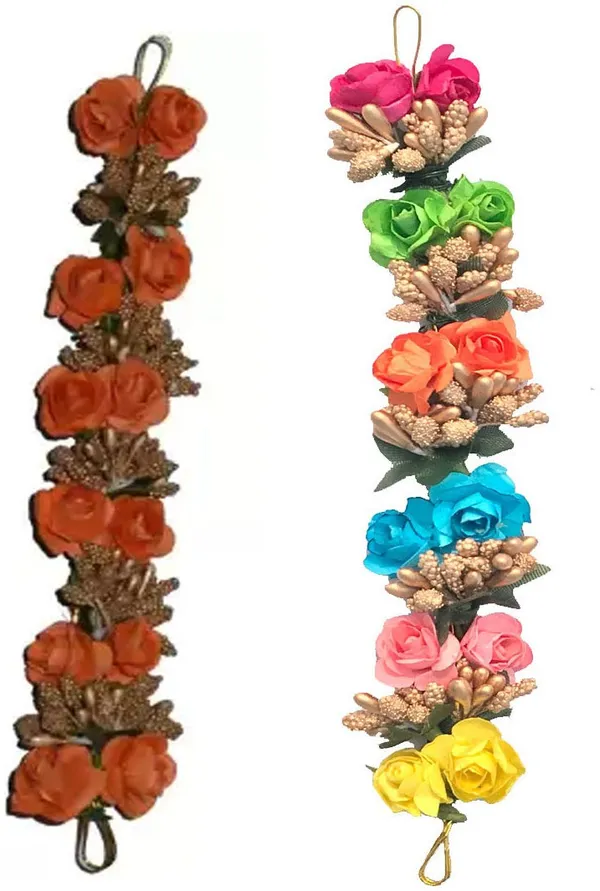 GadinFashion Set of 2 Fancy Red Fabric Hair Artificial flower gajra