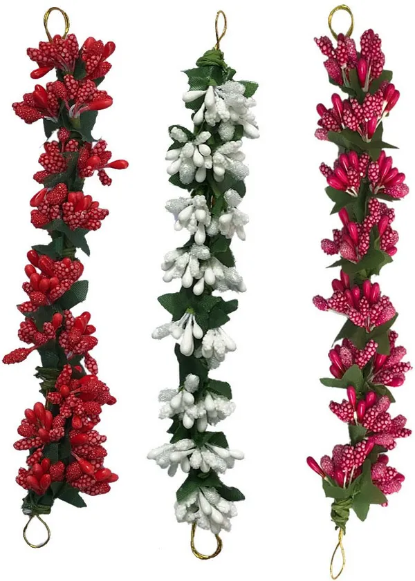 GadinFashion Set of 2 Red ,Pink and White Gajra, Flower Juda Gajra, Hair Ac..More