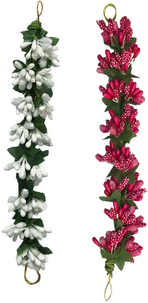 GadinFashion Set of 2 White and Pink Gajra, Flower Juda Gajra, Hair Accesso..More