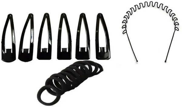 6 Tic Tac Hair Pin,12 Rubber Band, 1 Zig Zag Metal Hair Band