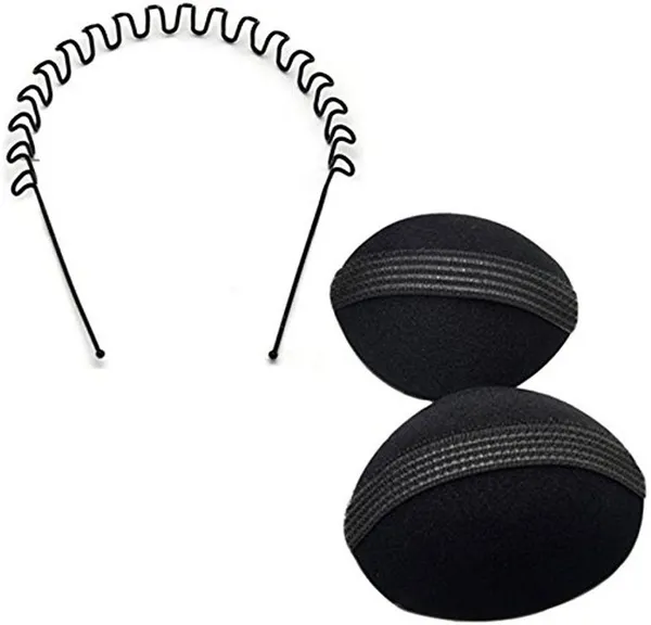 GadinFashion Set of Puff Bumpits and ZigZag Wave Band Hair Accessory Set (B..More